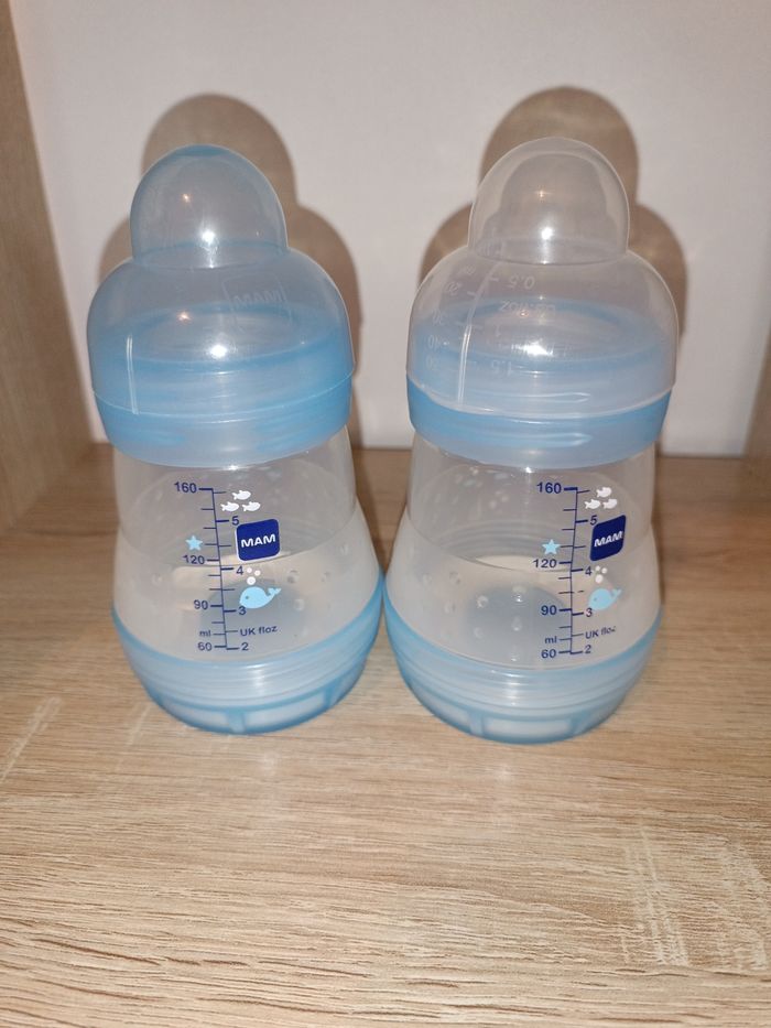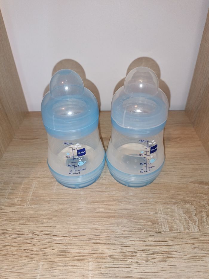 Bonjour, Je vends ce lot de 2 biberons MAM en 160ml. Sans les tétines. Ils sont bleu ciel, avec le fond qui se dévisse.