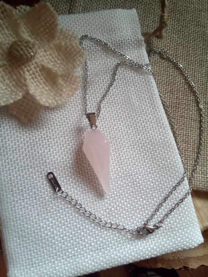 Collier avec pointe en pierre de quartz rose - photo numéro 1