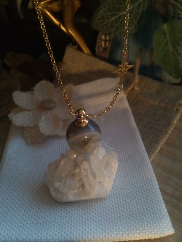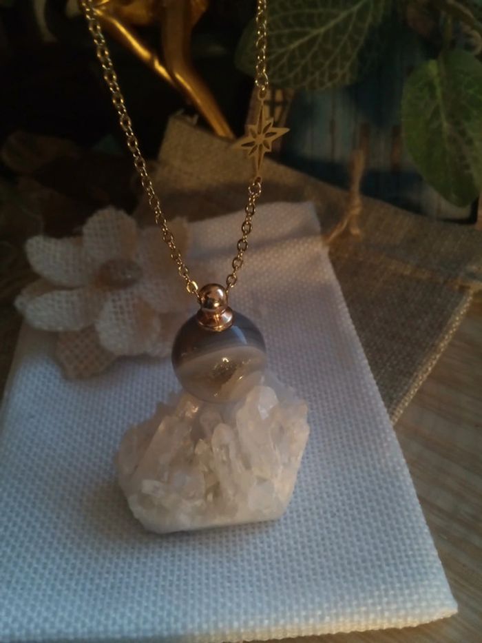 Collier avec pierre  géode d'agate grise et étoile du Nord - photo numéro 3