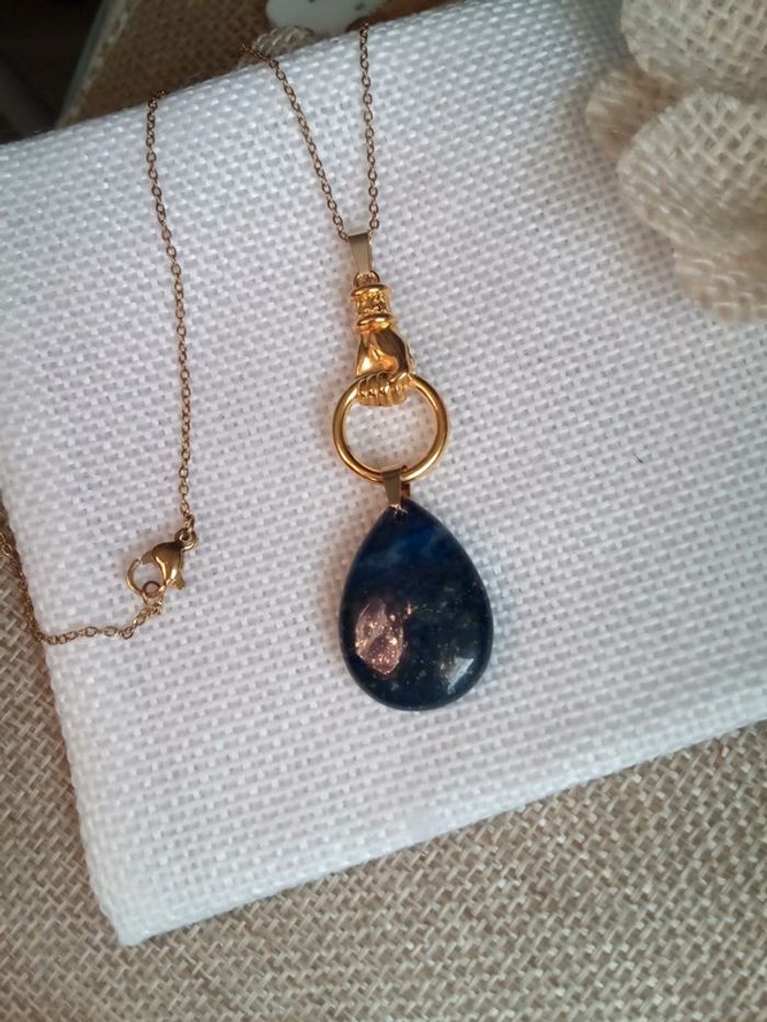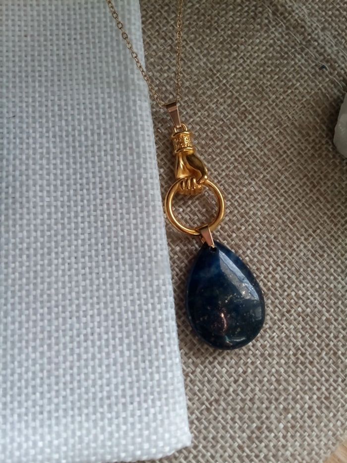 Collier main réversible pierre de lapiz lazuli - photo numéro 1