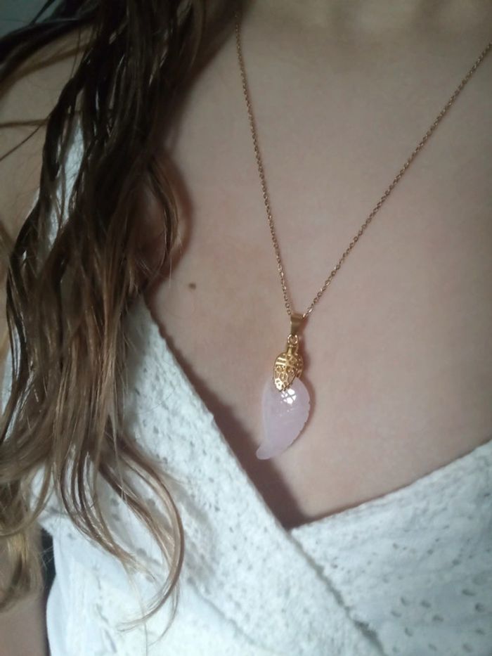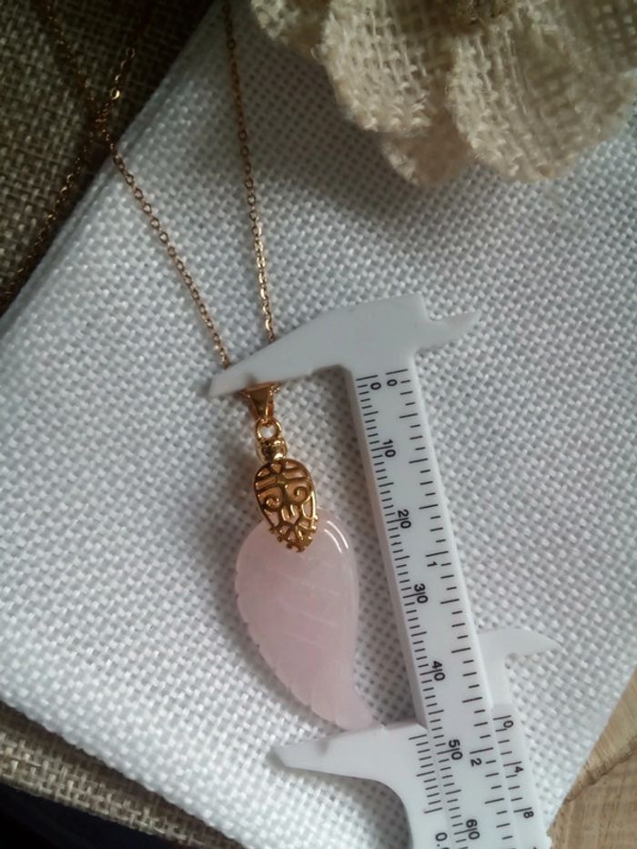 Collier aile en pierre de quartz rose - photo numéro 2