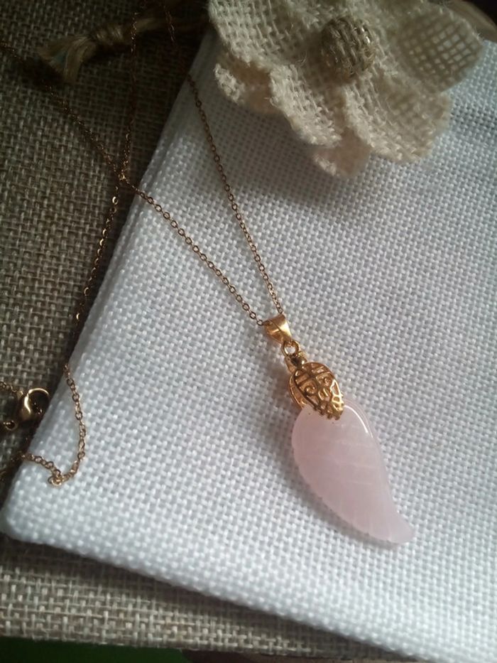 Collier aile en pierre de quartz rose - photo numéro 1