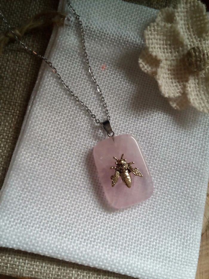 Collier pierre de quartz rose avec abeille - photo numéro 1