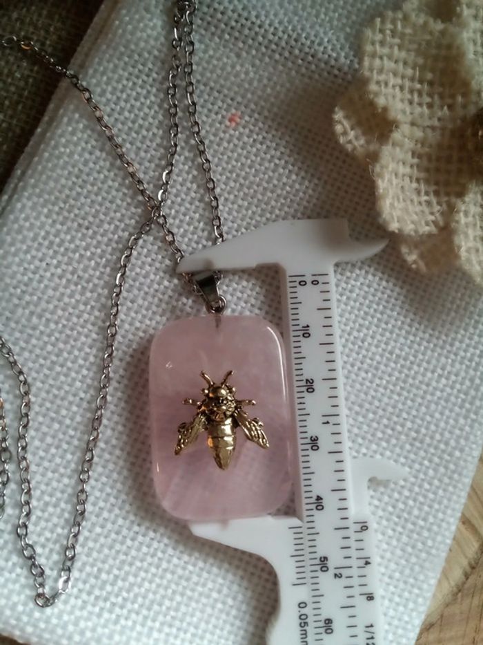 Collier pierre de quartz rose avec abeille - photo numéro 3