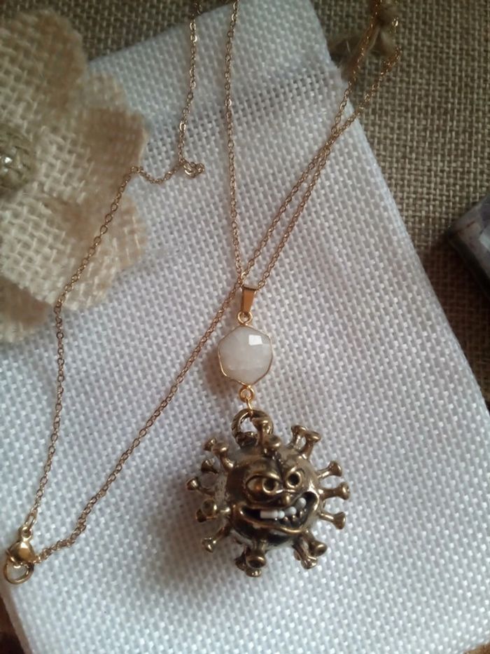 Collier sautoir virus et pierres de lune naturelle sertie - photo numéro 1