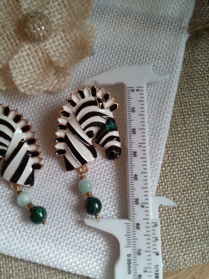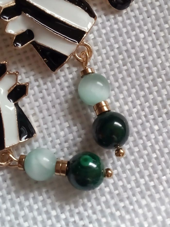 Boucles d'oreilles zèbre et pierres de malachite et larimar vert - photo numéro 3
