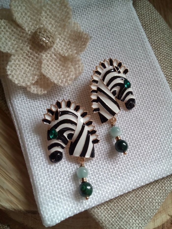 Boucles d'oreilles zèbre et pierres de malachite et larimar vert - photo numéro 1
