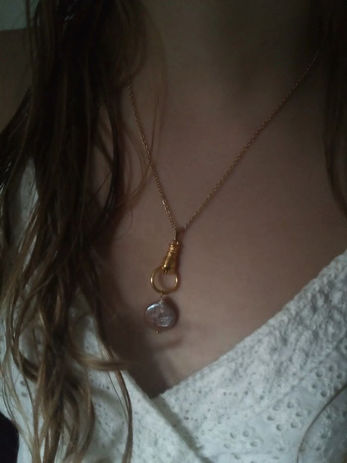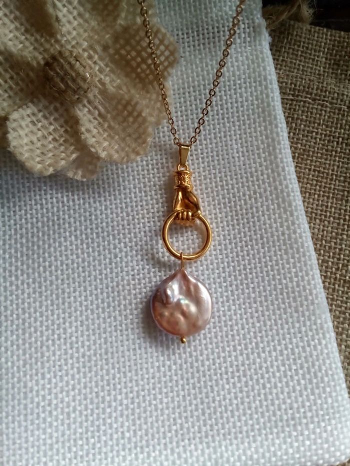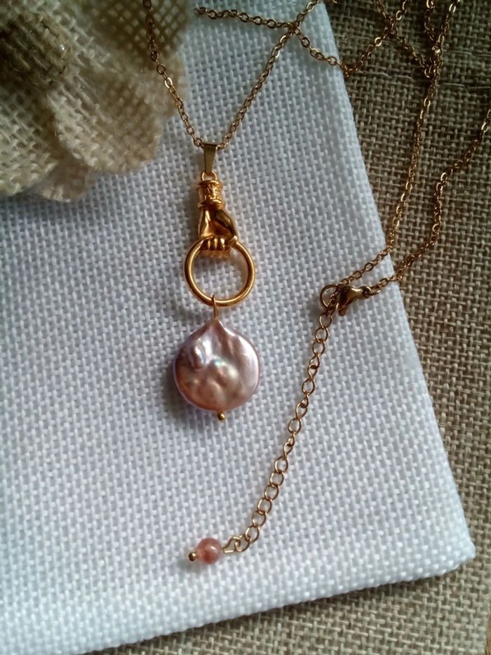 Collier main et pierre de culture d'eau douce naturelle - photo numéro 1