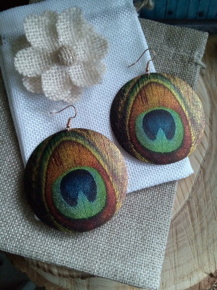 Boucles d'oreilles effet plumes de paon - photo numéro 1