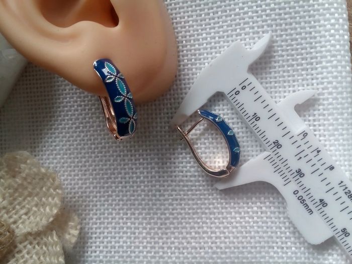 Boucles d'oreilles émaillées bleues - photo numéro 1