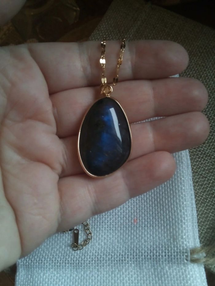 Jolie pièce ✨ n e u f prix ferme (réductions sur les lots) 🩷 pièce unique 🤍 Chaîne en acier inoxydable 40 cm et 5 cm d'extension pierre 100% naturelle avec des reflets bleus ( peu de luminosité le jour de la photo) Si vous êtes intéressée par un lot (il faut m'envoyer les captures d'écran des articles concernés et je fais le lot 😉) : 🤍 Frais de port offert pour 2 articles 🤍 A partir de 3 articles je fais 10% sur le lot (sans déduction des frais de port) Vous trouverez aussi pierres naturelles semi précieuses d'améthyste jade labradorite kyanite ambre citrine pierre de lune onix vintage tweed oversize libellule magie wicca bohème fée boho mortelle Adèle yin yang bouddhiste hindou spirituel grossesse maternité blanche rouge noir œil cœur hindi cargo cadeau bola scarabé pendule sorcellerie ésotérisme mode amulette bonheur ethnique santé bas guérison prière talisman prénom manga chemin indien oriental viking tarot obsidienne trèfle zircon or 18k 24k lithothérapie dentelle mèche coffret ambre cadeau anniversaire Noël mariage baptême fête coeur