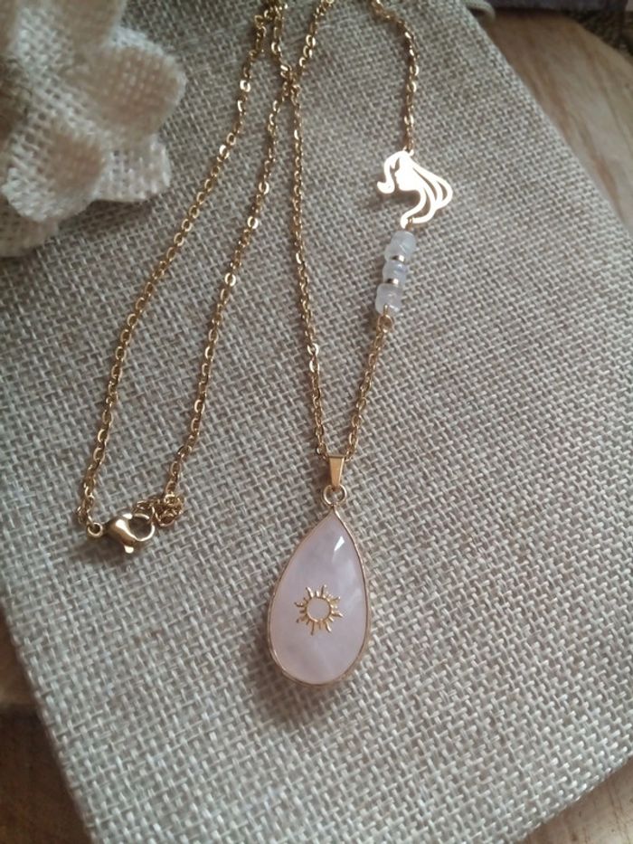 Jolie pièce ✨ n e u f prix ferme (réductions sur les lots) 🩷 pièce unique 🤍 Chaîne en acier inoxydable 52 cm pierres 100% naturelles Pendentif en quartz rose à facettes avec un soleil ☀️ d'un côté Si vous êtes intéressée par un lot (il faut m'envoyer les captures d'écran des articles concernés et je fais le lot 😉) : 🤍 Frais de port offert pour 2 articles 🤍 A partir de 3 articles je fais 10% sur le lot (sans déduction des frais de port) Vous trouverez aussi pierres naturelles semi précieuses d'améthyste jade labradorite kyanite ambre citrine pierre de lune onix vintage tweed oversize libellule magie wicca bohème fée boho mortelle Adèle yin yang bouddhiste hindou spirituel grossesse maternité blanche rouge noir œil cœur hindi cargo cadeau bola scarabé pendule sorcellerie ésotérisme mode amulette bonheur ethnique santé bas guérison prière talisman prénom manga chemin indien oriental viking tarot obsidienne trèfle zircon or 18k 24k lithothérapie dentelle mèche coffret ambre cadeau anniversaire Noël mariage baptême fête coeur