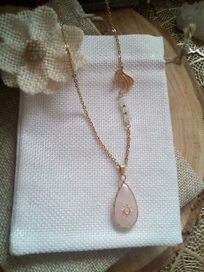 Collier réversible quartz rose et pierres de lune naturelles - photo numéro 4