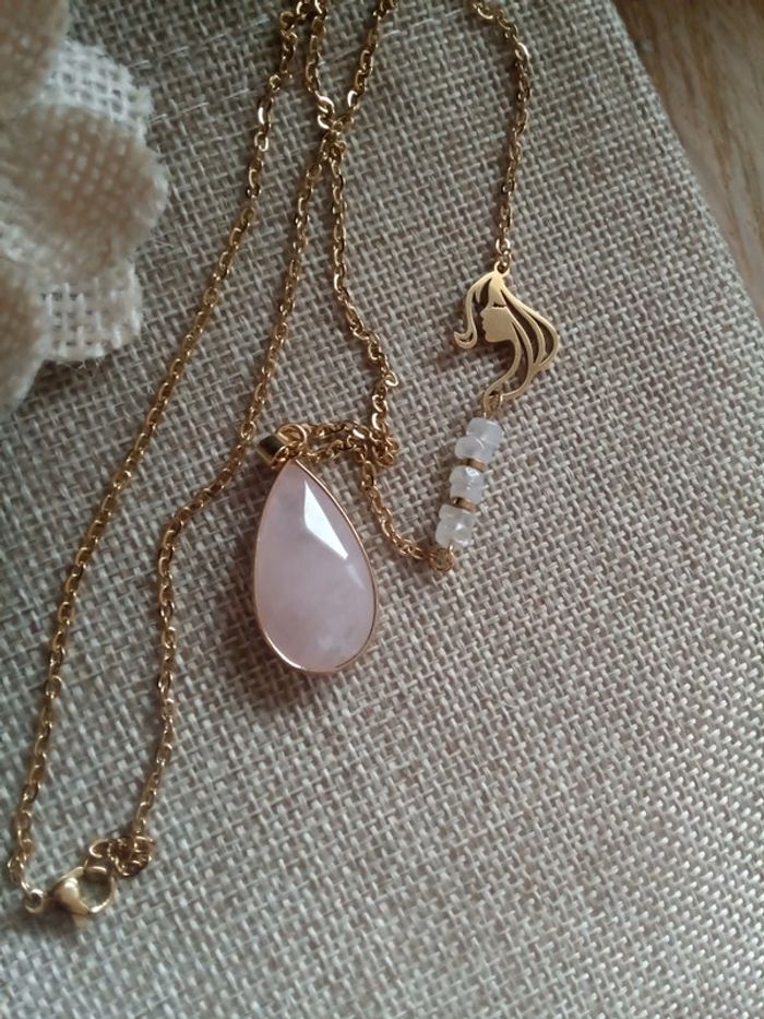 Collier réversible quartz rose et pierres de lune naturelles - photo numéro 1