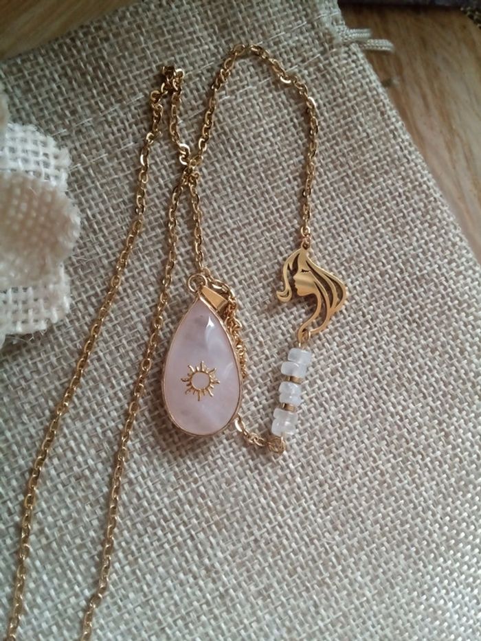 Collier réversible quartz rose et pierres de lune naturelles - photo numéro 2