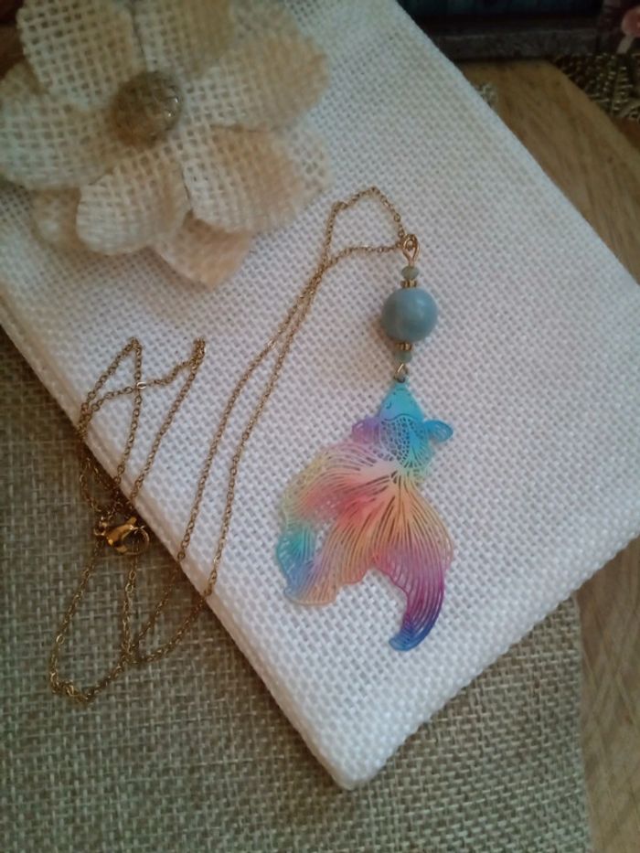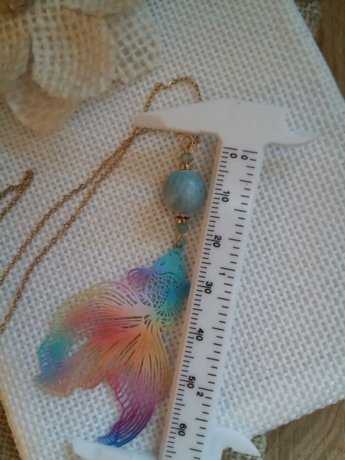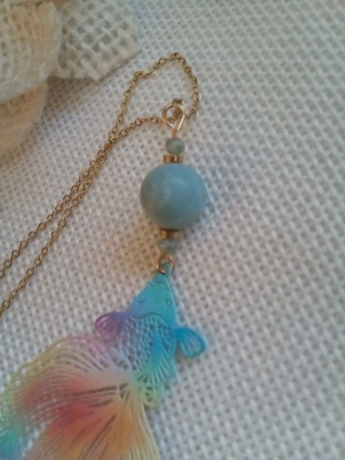 Collier poisson coloré et pierre de larimar bleu - photo numéro 4