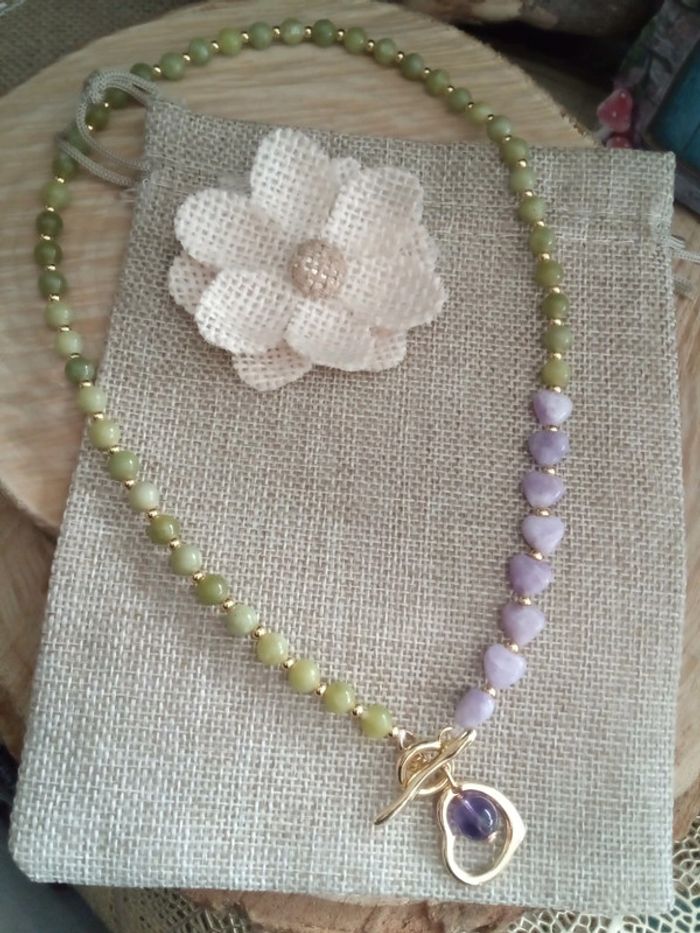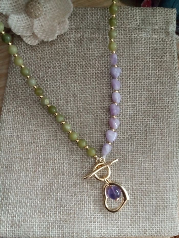Collier en pierres semi précieuses jade et lépidolite - photo numéro 1