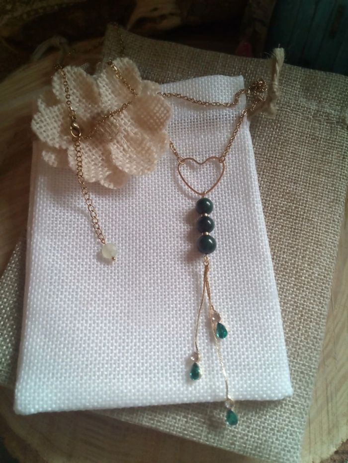Collier pierre de malachite et zircons verts - photo numéro 1