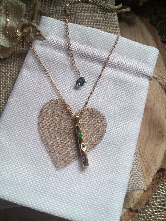 Collier tube œil de nazar en acier inoxydable - photo numéro 1