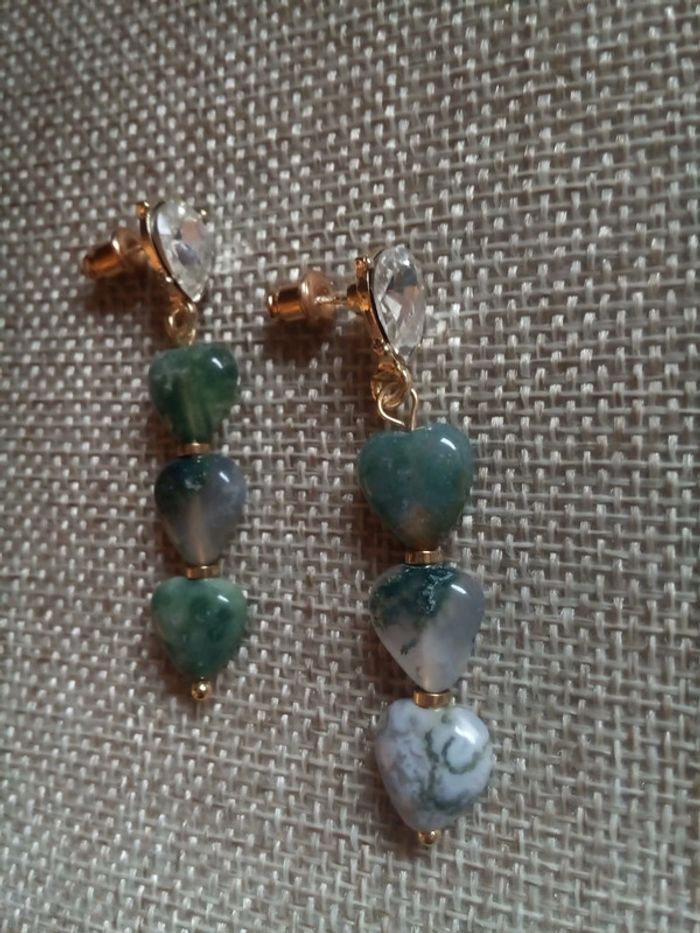 Boucles d'oreilles cœurs en pierres naturelles d'agate indienne