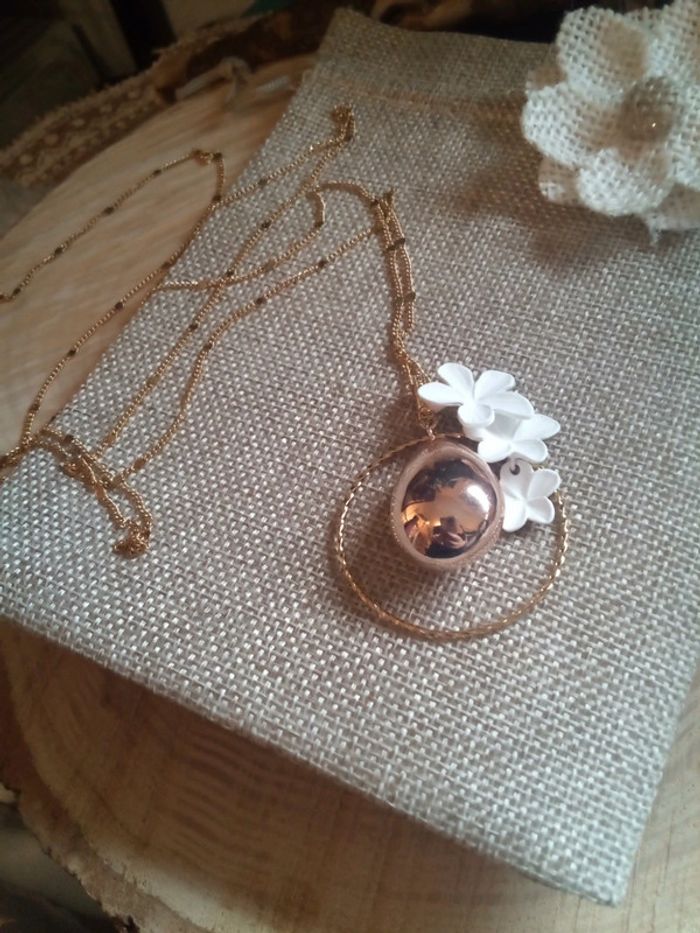 Collier sautoir BOLA goutte et fleurs blanches - photo numéro 1