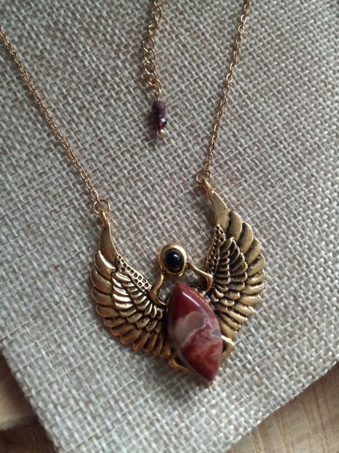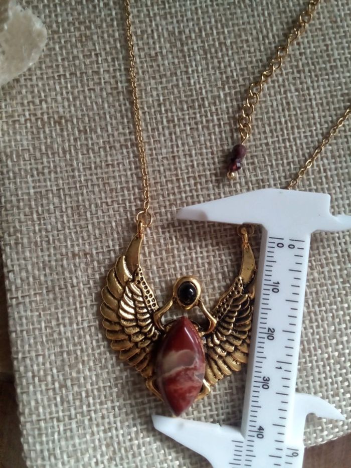 Collier scarabée ailé avec pierre de jaspe rouge et pierre d'obsidienne noire - photo numéro 2