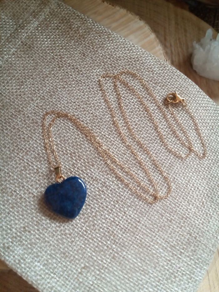 Collier cœur en pierre de lapis lazuli - photo numéro 1