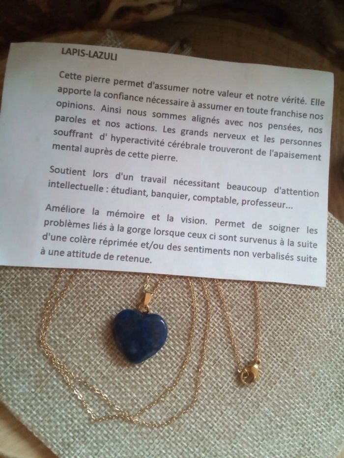 Collier cœur en pierre de lapis lazuli - photo numéro 2