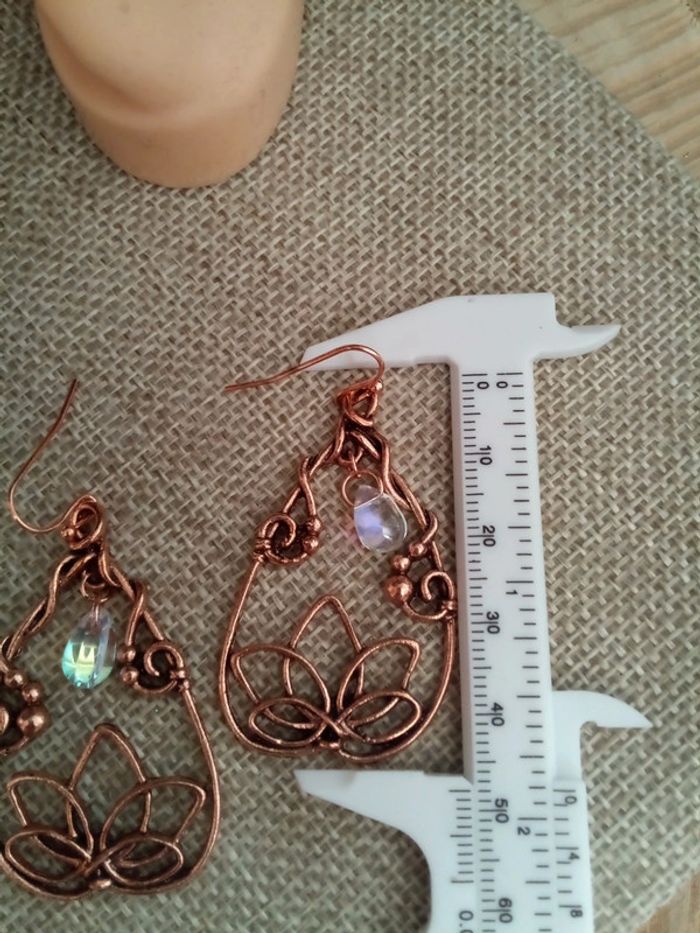 Boucles d'oreille bohème perles de verres à reflets bleutés - photo numéro 2