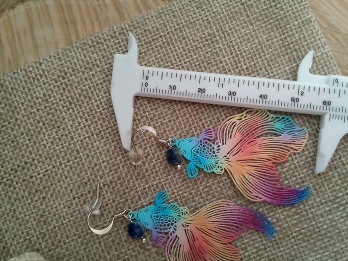 Boucles d'oreilles poissons filigranés et pierres de lapis lazuli - photo numéro 4