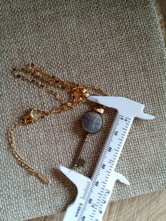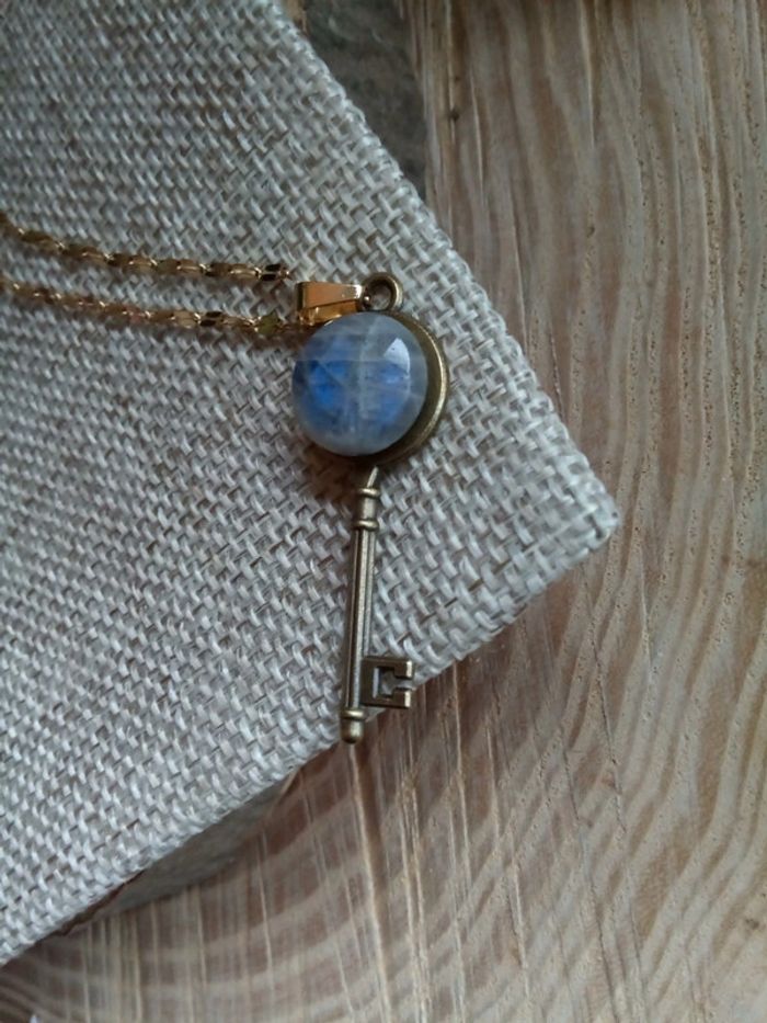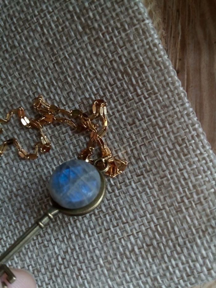 Collier clé avec pierre de labradorite à reflets bleutés - photo numéro 3