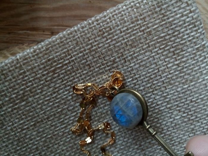 Collier clé avec pierre de labradorite à reflets bleutés - photo numéro 5