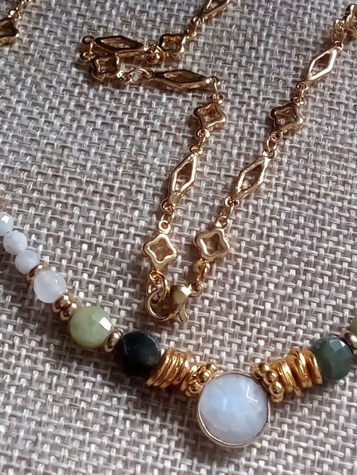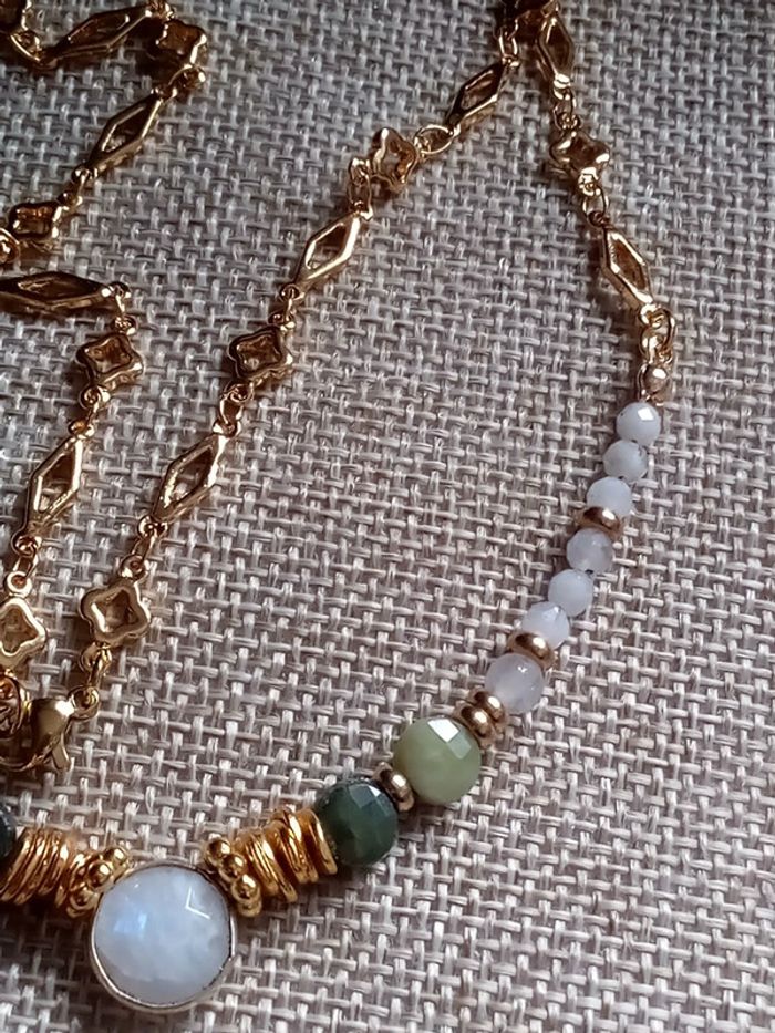 Collier en pierres semi précieuses, pierres de lune et de jade verte - photo numéro 1
