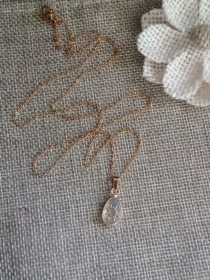 Jolie pièce ✨ n e u f prix ferme (réductions sur les lots) 🩷 pièce unique 🤍 Chaîne en acier inoxydable 60 cm, un côté soleil ☀️ Si vous êtes intéressée par un lot (il faut m'envoyer les captures d'écran des articles concernés et je fais le lot 😉) : 🤍 Frais de port offert pour 2 articles 🤍 A partir de 3 articles je fais 10% sur le lot (sans déduction des frais de port) Vous trouverez aussi pierres naturelles semi précieuses d'améthyste jade labradorite kyanite ambre citrine pierre de lune onix libellule mortelle Adèle oracle magie wicca bohème fée boho yin yang bouddhiste hindou hindi cargo cadeau bola royaumes de feu scarabé pendule sorcellerie ésotérisme dogna mode amulette bonheur ethnique santé guérison prière talisman huile essentielle tarot obsidienne trèfle zircon or 18k 24k lithothérapie cadeau anniversaire Noël mariage baptême fête coeur