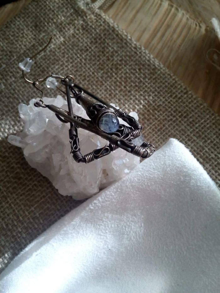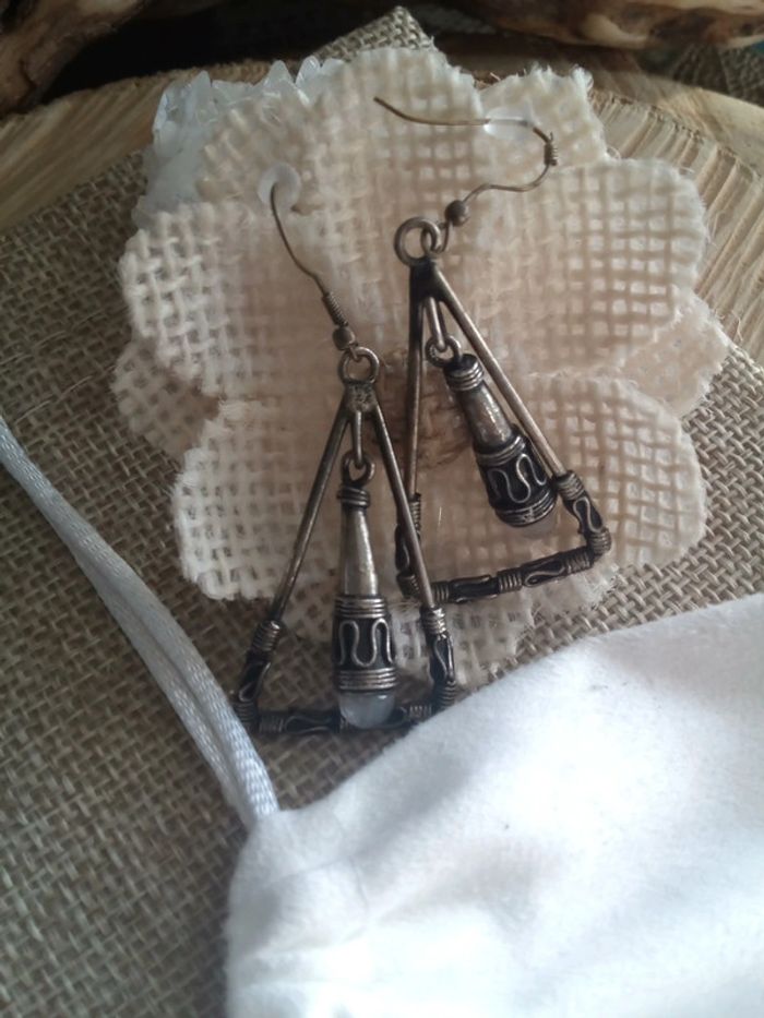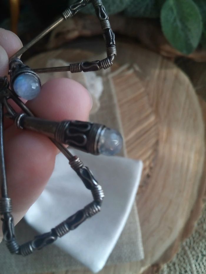 Boucles d'oreilles bronze rétro et pierres de lune naturelles - photo numéro 5