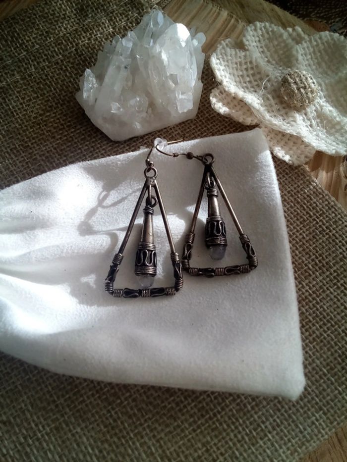Boucles d'oreilles bronze rétro et pierres de lune naturelles - photo numéro 4