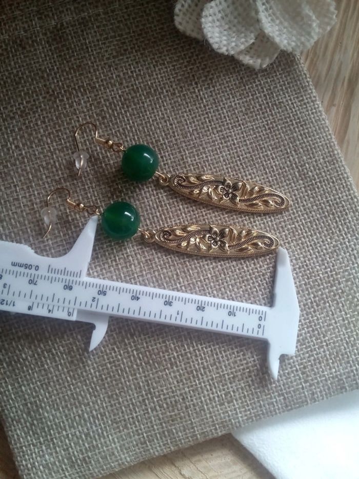 Boucles d'oreilles agate verte en pierres naturelles - photo numéro 4