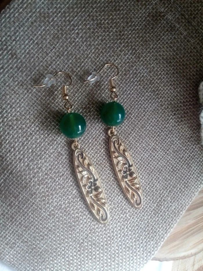 Boucles d'oreilles agate verte en pierres naturelles - photo numéro 1