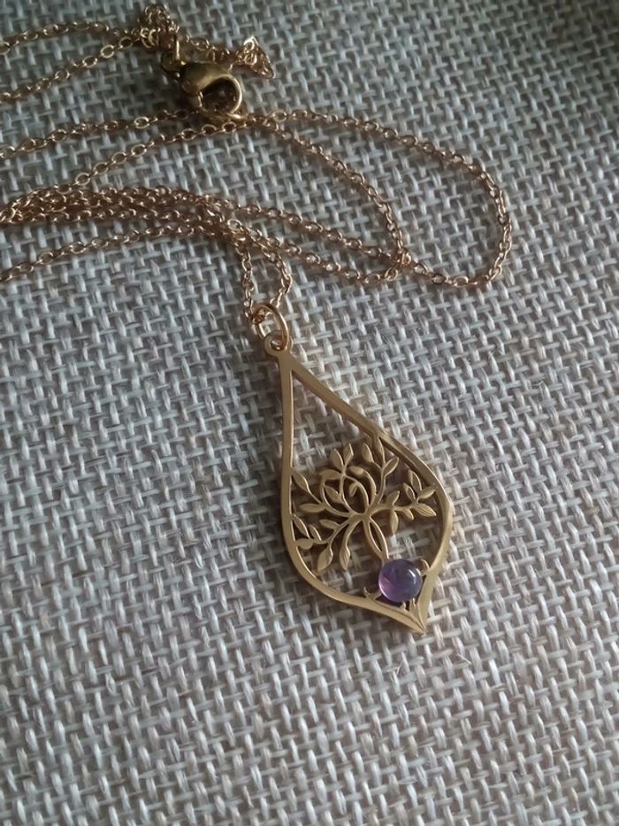 Collier arbre de vie et pierre d'améthyste - photo numéro 1