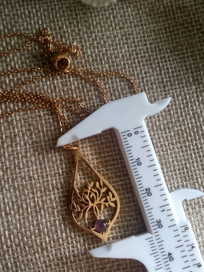 Collier arbre de vie et pierre d'améthyste - photo numéro 2