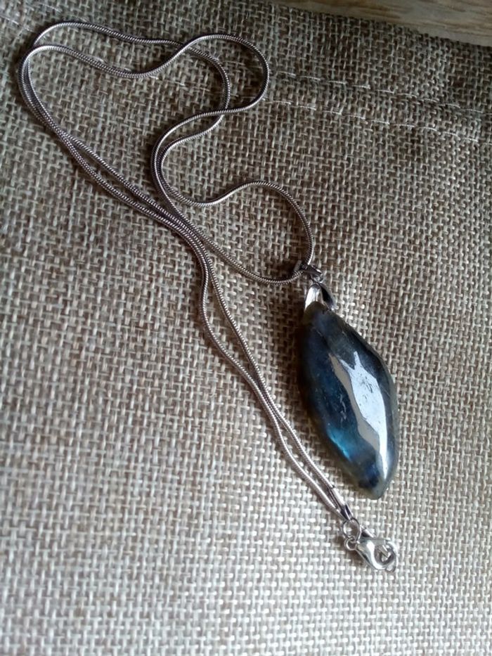 Collier labradorite naturelle chaîne plaquée 18k - photo numéro 3