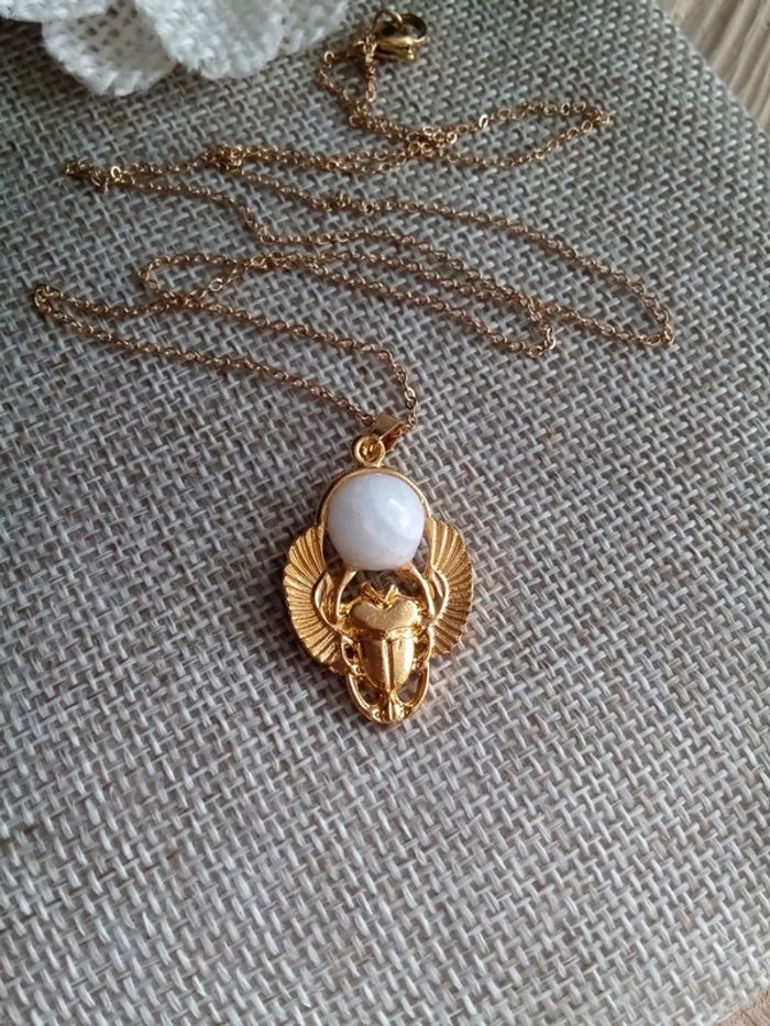 Collier scarabée pierre de lune naturelle - photo numéro 1