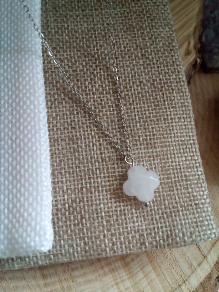 Collier trèfle en pierre de jade blanc - photo numéro 2