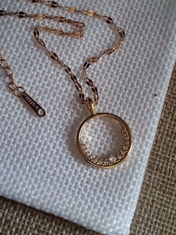 Collier cercle zircons en acier inoxydable - photo numéro 1