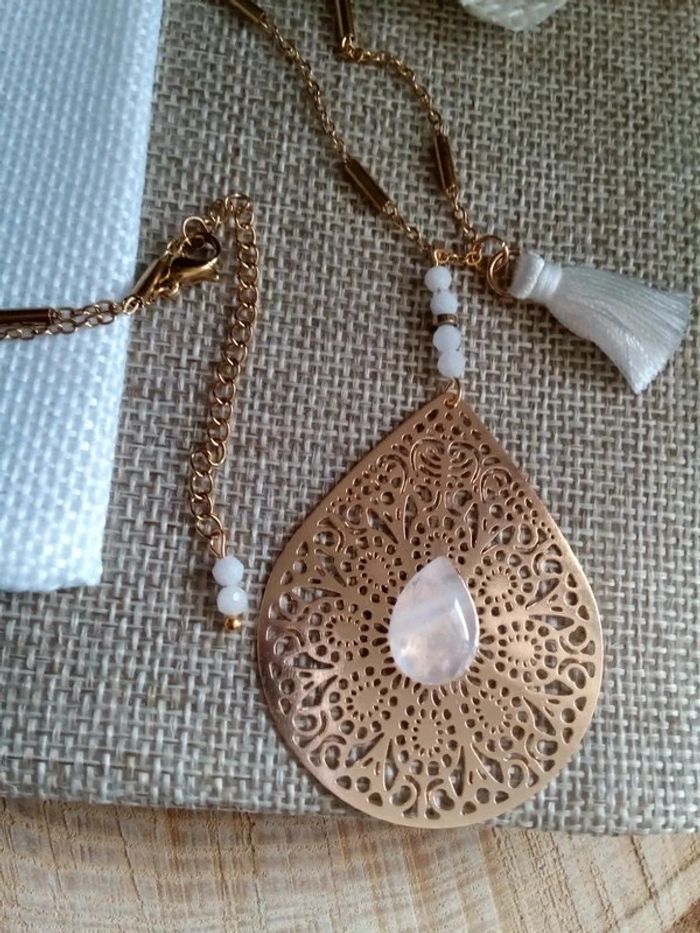N.e'u.f prix ferme 💞 (réductions sur les lots) ☀️ pièce unique 👌 Chaîne en acier inoxydable 50 cm réglable Pierres de lune et cristal de quartz Pompon blanc Si vous êtes intéressée par un lot (il faut m'envoyer les captures d'écran des articles concernés et je fais le lot 😉) : 🤍 Frais de port offert pour 2 articles 🤍 A partir de 3 articles je fais 10% sur le lot (sans déduction des frais de port) Vous trouverez aussi pierres naturelles semi précieuses d'améthyste jade labradorite kyanite ambre citrine pierre de lune onix libellule mortelle Adèle oracle magie wicca bohème fée boho cadeau bola royaumes de feu scarabé pendule sorcellerie ésotérisme dogna mode amulette bonheur ethnique santé guérison prière talisman huile