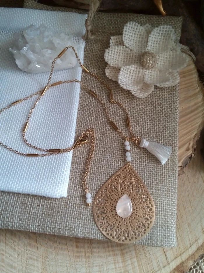 Collier bohème pierre de cristal de quartz - photo numéro 2