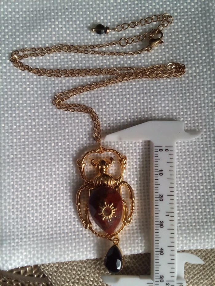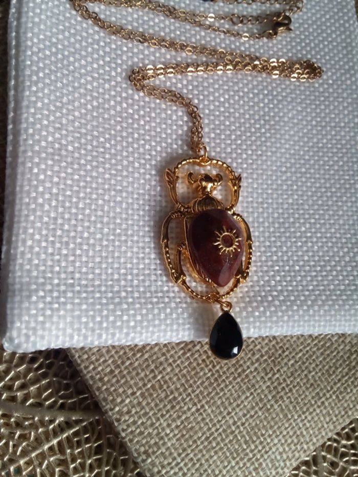Collier scarabée pierre de jaspe et obsidienne 🖤. - photo numéro 1