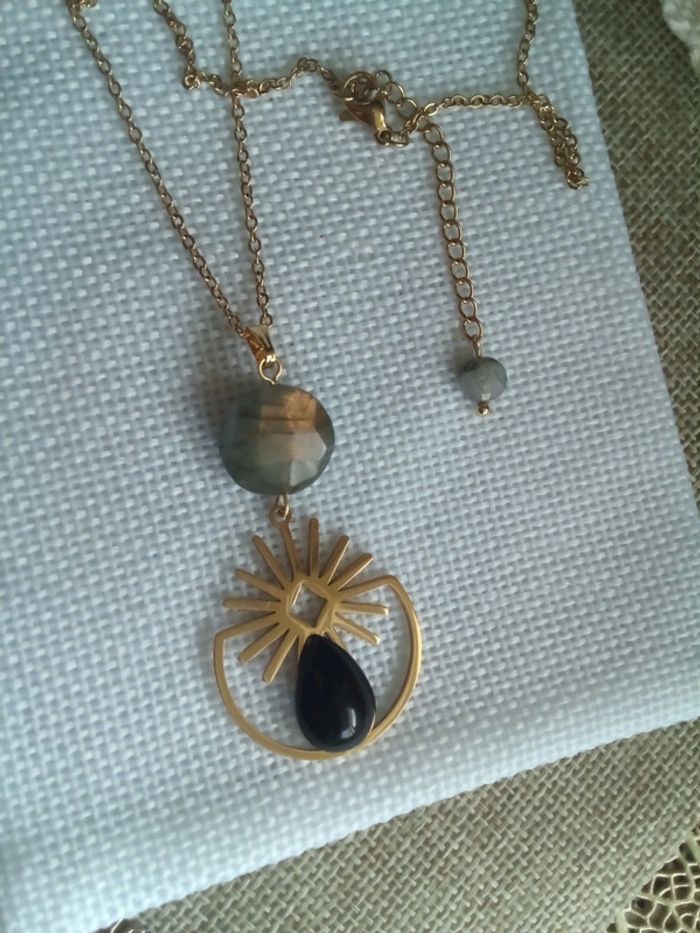 Collier protection pierres de labradorite et obsidienne - photo numéro 3