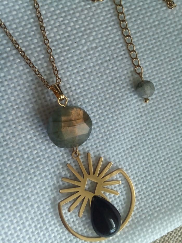 Collier protection pierres de labradorite et obsidienne - photo numéro 2