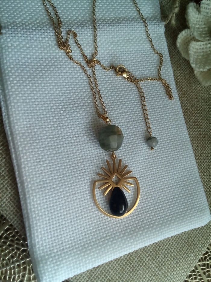 Collier protection pierres de labradorite et obsidienne - photo numéro 1